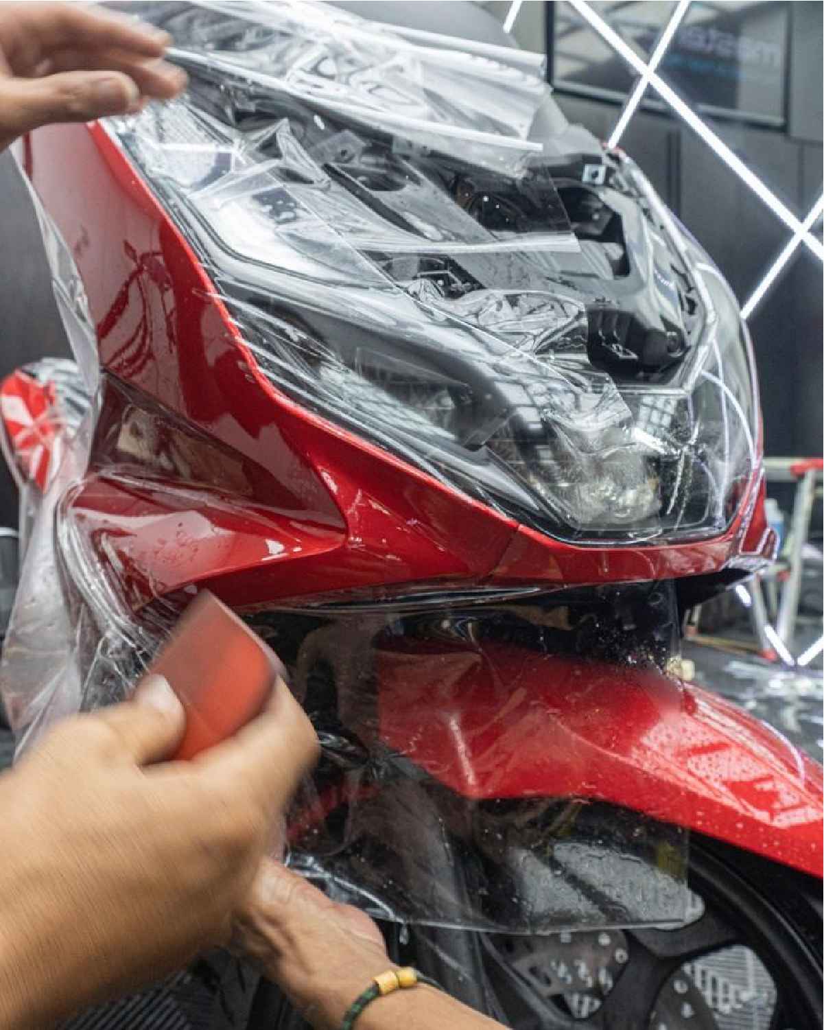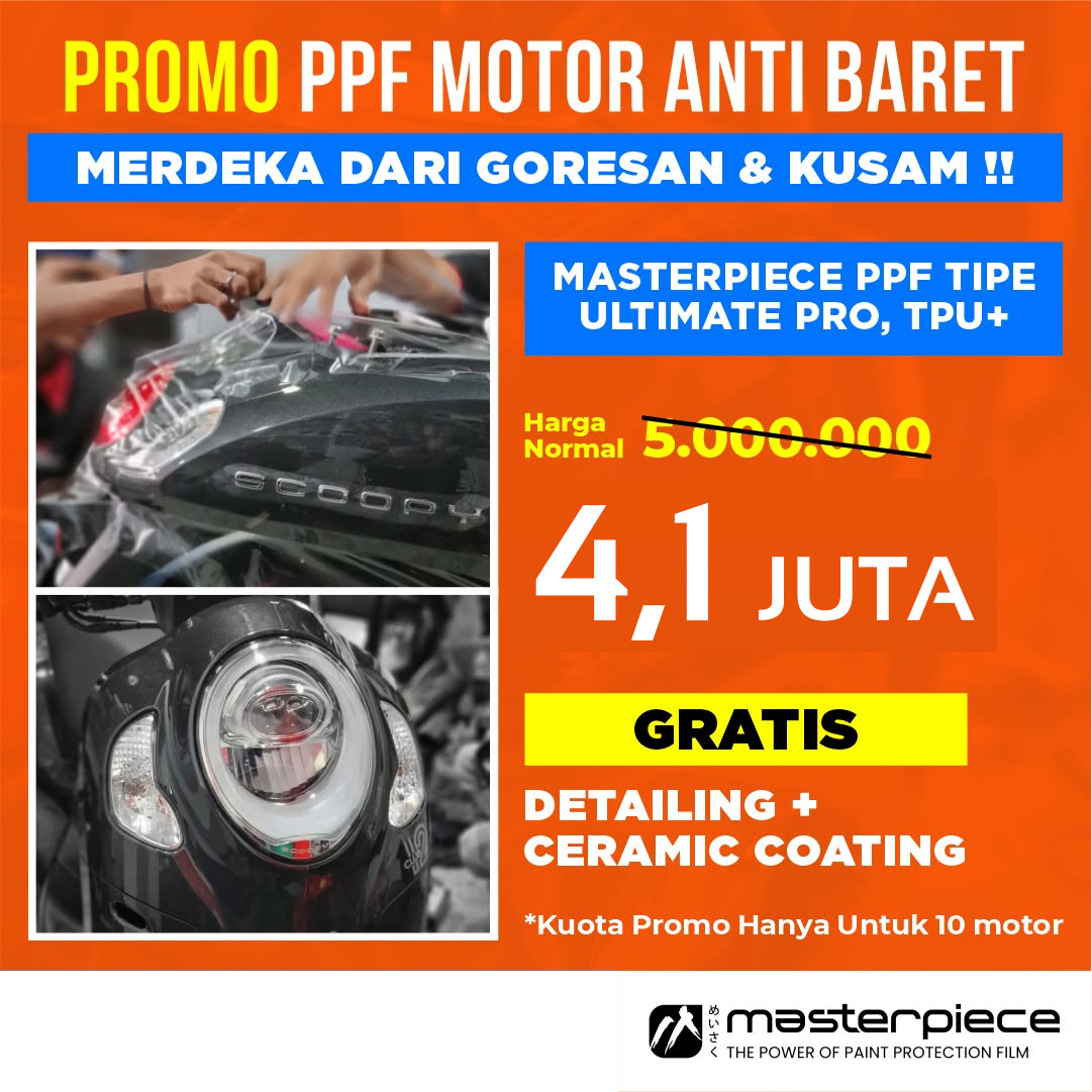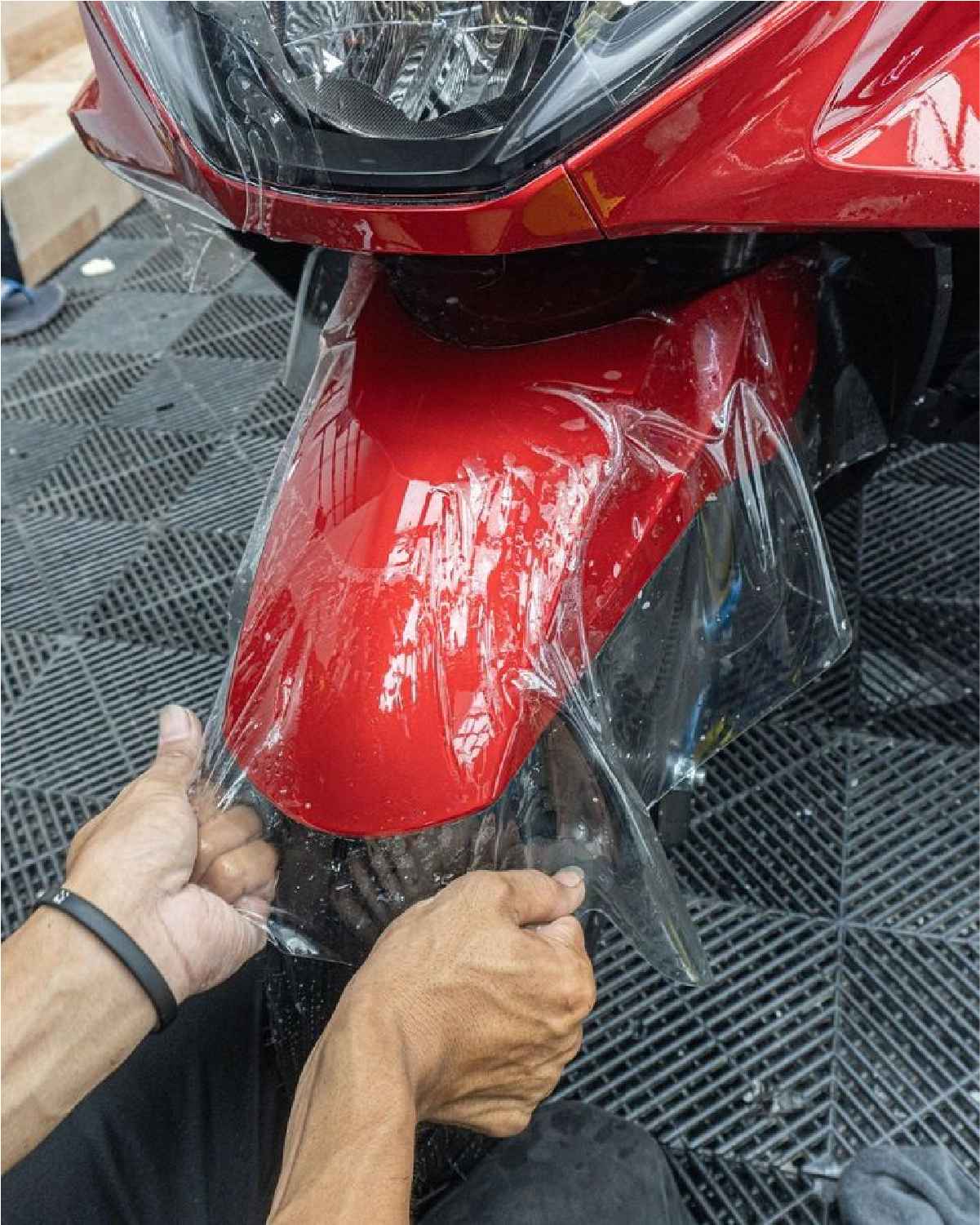 MASTERPIECE Paint Protection Film (PPF) tipe Ultimate Pro dengan bahan TPU+ yang diproduksi khusus untuk bodi motor, dengan tujuan memberikan perlindungan ekstra pada bodi motor agar terlindung dari goresan, benturan dan noda yang sulit dihilangkan serta efek negatif dari sinar UV matahari, sehingga motor selalu mulus dan tampak baru.