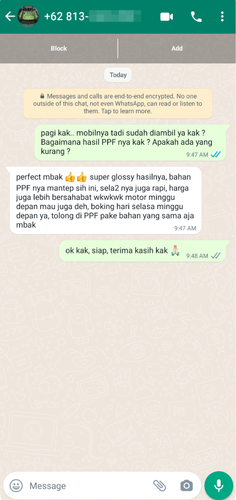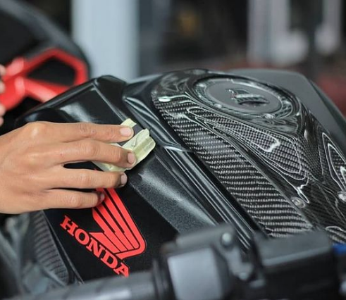 Coating super ceramic 9H+ adalah pilihan terbaik untuk melindungi bodi motor anda. Dengan lapisan bening yang tipis namun sangat kuat, coating ini tiga kali lebih tahan lama dibandingkan bahan ceramic biasa. Perlindungan ekstra ini memberikan efek kilap yang tahan lama, menjaga motor tetap mengkilap dan terlindungi dari goresan serta cuaca ekstrem, sehingga tampilannya selalu optimal. Cocok untuk anda yang ingin motor terlihat seperti baru lebih lama.