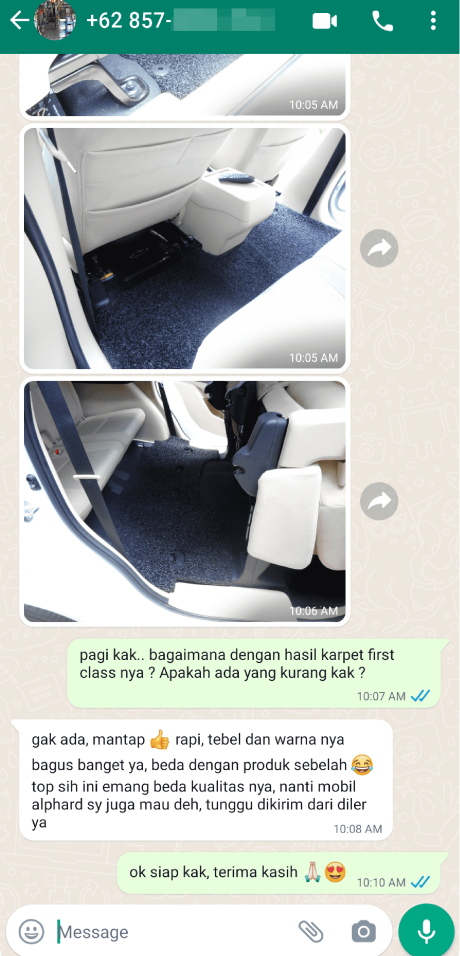 Karpet FIRST CLASS tipe VVIP dengan bahan microfiber leather di design khusus untuk setiap mobil dengan hasil ukuran yang sangat fit, presisi dan mewah, menutup semua bagian lantai mobil termasuk dinding samping sehingga kotoran / pasir / tanah semua nya tertampung di permukaan karpet dan sangat mudah untuk dibersihkan.